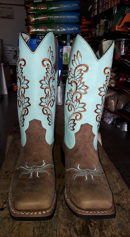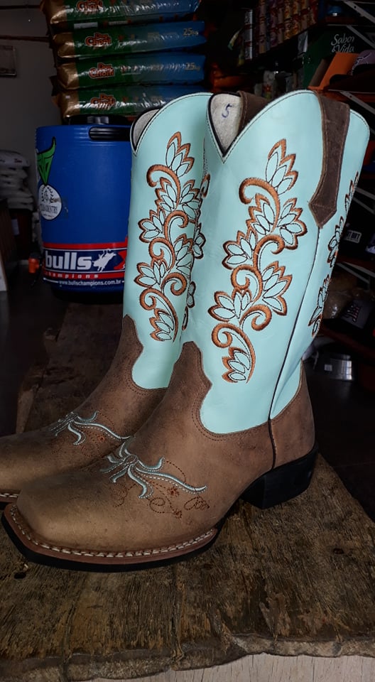 Bota texana verde água,e marrom