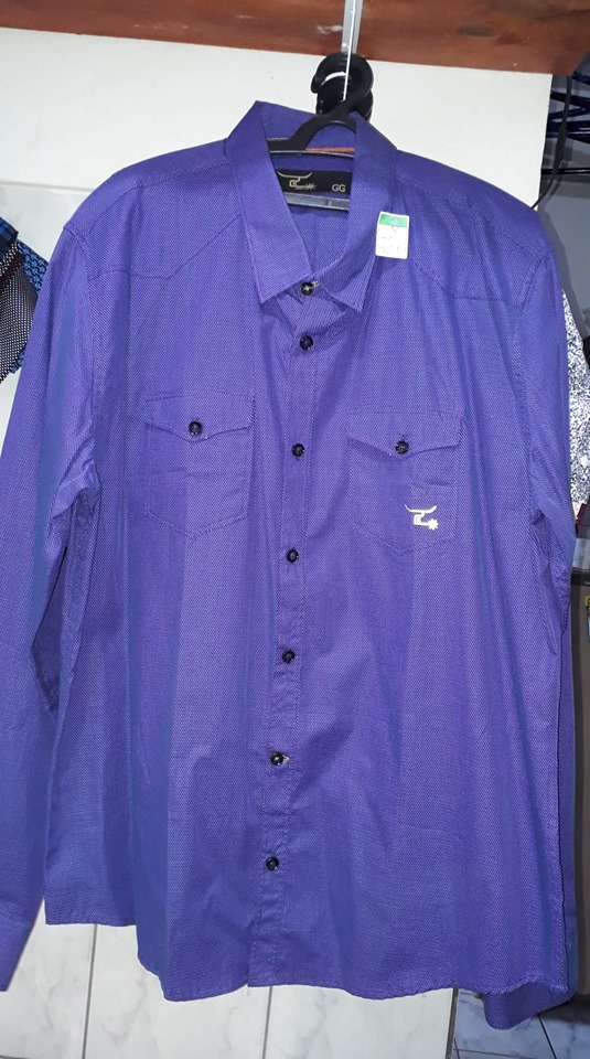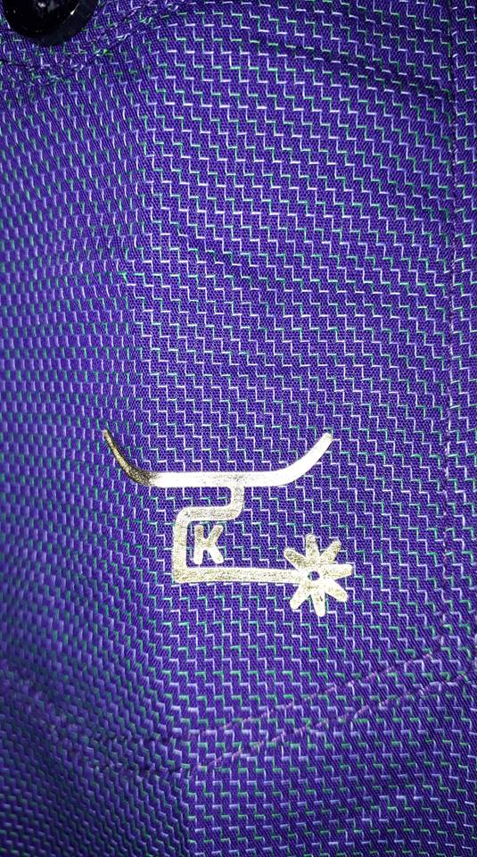 camisa manga longa azul, com detalhes na marca 2K em dourado.